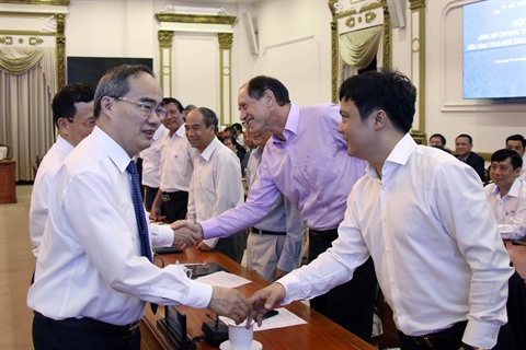 | Le secrétaire du Comité du Parti pour Hô Chi Minh-Ville, Nguyên Thiên Nhân (gauche) lors de l'événement, le 22 juillet. |