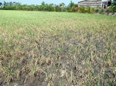 | Des rizières détruites dans la province de Soc Trang (delta du Mékong) à cause de la sécheresse et de la salinisation des sols, en mars 2013. |