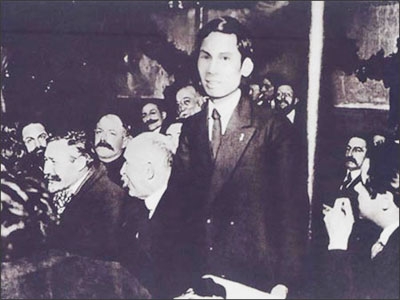 | Nguyên Ai Quôc (debout) au XVIIIe Congrès du Parti socialiste français à Tours en décembre 1920. |
