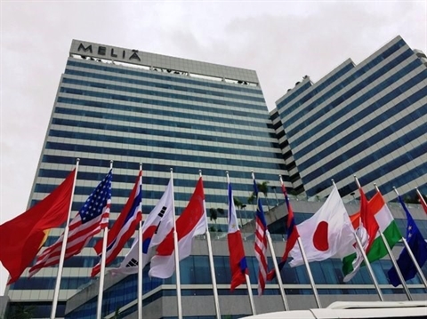 | Façade de l'hôtel Melia Yangon. |