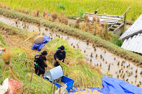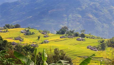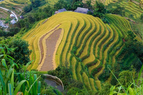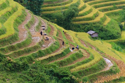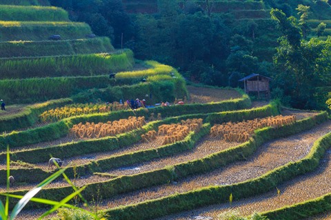 | Moisson d’or sur les rizières en terrasses à Hoàng Su Phi. |
