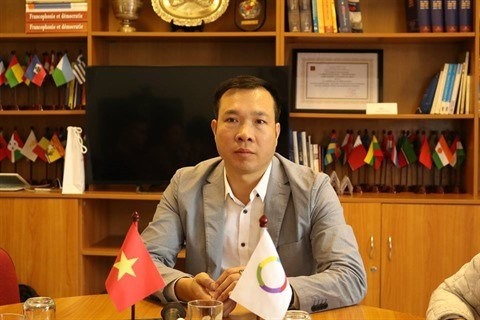 | Hoàng Xuân Vinh lors d'une rencontre avec les jeunes reporters francophones. |
