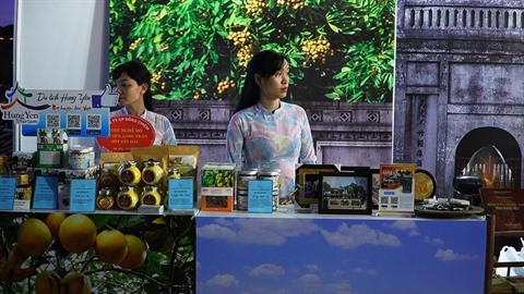 | Un stand présantant des produits d'art et d'artisanat à l’exposition "Espace du patrimoine culturel du Vietnam". |