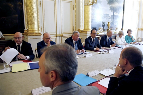 | François Hollande a réuni un conseil de défense, le 24 juin à l'Élysée après les révélations de WikiLeaks selon lesquelles Washington a mis sur écoute trois présidents français entre 2006 et 2012. |