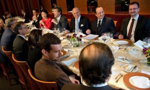 Au cours d'un déjeuner dans un restaurant de San Francisco, François Hollande a rencontré aussi les tycoons de l'internet, Eric Schmidt (Google), Sheryl Sandberg (Facebook), Jack Dorsey (Twitter) ou Mitchell Baker (Mozilla Foundation).
