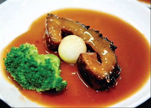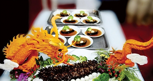 - Faire chauffer l’huile de cuisson, ajouter gingembre moulu et piment en tranches puis les holothuries. Ajouter les ormeaux, les pois verts et l’assaisonnement et bien remuer. Mélanger la farine de manioc avec la moitié d’un petit bol d’eau et verser dans le mélange. Poursuivre la cuisson pendant un certain temps. Placer le mélange sur une grande assiette, verser la sauce, mettre l’œuf de caille et le chou-fleur, puis saupoudrer de poivre.