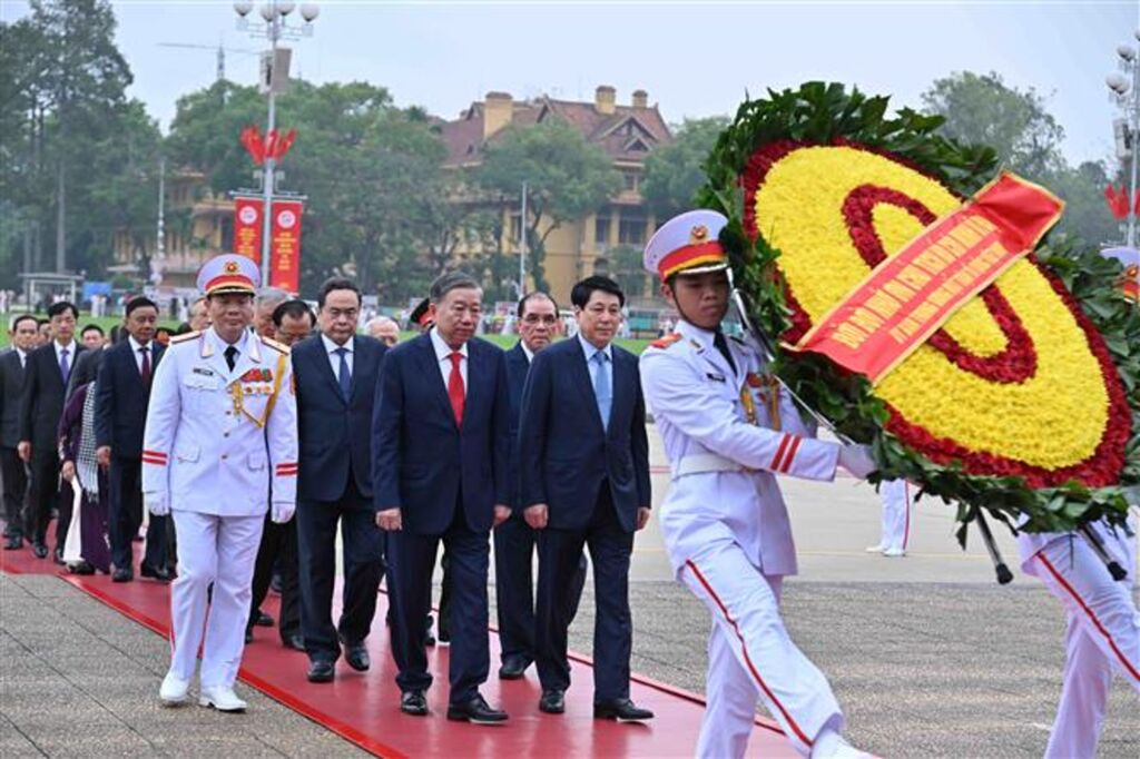 La délégation comprenait, entre autres, le secrétaire général du Parti, Tô Lâm ; le président de la République, Luong Cuong ; le président de l'Assemblée nationale, Trân Thanh Mân ; le permanent du Secrétariat du Parti, Trân Câm Tu ; ainsi que le président du Comité central du Front de la Patrie du Vietnam (FPV), Dô Van Chiên.