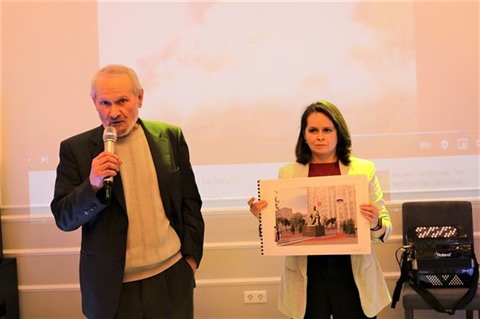 | L’architecte Anatoly Chernov et sa fille Anatoly Chernov, qui ont conçu la statue du Président Hô Chi Minh à Saint-Pétersbourg. |