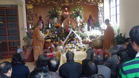 | Cérémonie de prière pour les 64 soldats vietnamiens tombés en 1988 sur le récif de Gac Ma dans la pagode de Khuong Viêt, le 13 mars à Paris (France). |