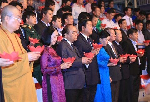 | Le vice-Premier ministre Nguyên Xuân Phuc (1er plan, 3e à gauche) rend hommage aux victimes des accidents de la route, le 15 novembre à Hanoi. |