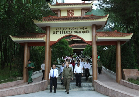 | Le président du Comité central du Front de la Patrie du Vietnam, Nguyên Thiên Nhân (1er plan, à droite), en visite du site historique du carrefour de Dông Lôc, province de Hà Tinh (Centre). |