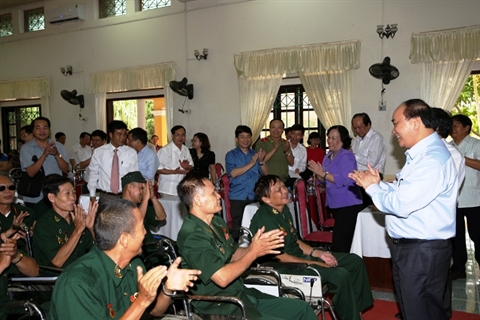 | Le vice-Premier ministre Nguyên Xuân Phuc (droite) s’est rendu le 25 juillet au Centre de soin des invalides de guerre de Duy Tiên, dans la province septentrionale de Hà Nam. |
