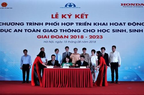 Les signataires étaient la vice-ministre de l’Éducation et de la Formation, Nguyên Thi Nghia, le vice-président du Comité national de la sécurité routière, Khuât Viêt Hùng, et le directeur général de Honda Vietnam, Toshio Kuwahara.