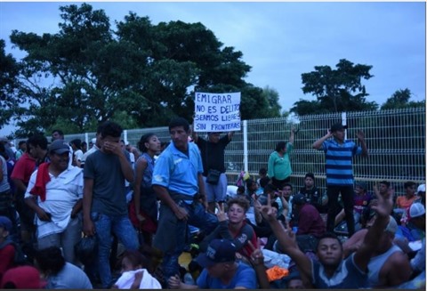 Environ 4.000 sont arrivés en petits groupes, à pied ou par bus, au cours des derniers jours à Tecun Uman, au Guatemala. Vendredi 19 octobre, ils ont enfoncé une clôture métallique du poste frontière guatémaltèque, avant de se retrouver bloqués par les forces de l'ordre mexicaines.