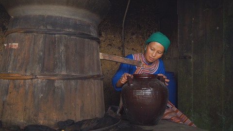 Avant de distiller l’alcool Hông Mi, le producteur doit séparer les graines de maïs. "Il faut enlever les graines de mauvaise qualité, puis faire bouillir le maïs pendant environ 20 à 24 heures jusqu'à ce que les graines commencent à fleurir. Ensuite, on les retire de l’eau et les graines sont mises à sécher sur des paniers pendant toute une journée", continue Vàng Thi Chu.