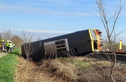 | Déraillement d'un train près de Mindszent, à 140 kilomètres au sud-est de Budapest, le 5 avril. |