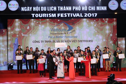 À Hô Chi Minh-Ville, l’année 2016 a été marquée par des résultats inoubliables dans le tourisme avec 5,2 millions de touristes étrangers, soit une hausse annuelle de 11%, et un chiffre d’affaires de 103.000 milliards de dôngs. Cette cérémonie a récompensé des entreprises et des marques touristiques - voyagistes, restaurateurs, hôteliers, transporteurs, sites touristiques, etc. - ayant contribué à la diversification et à l'amélioration de la qualité des produits et services de ce secteur, notamment par leur créativité.