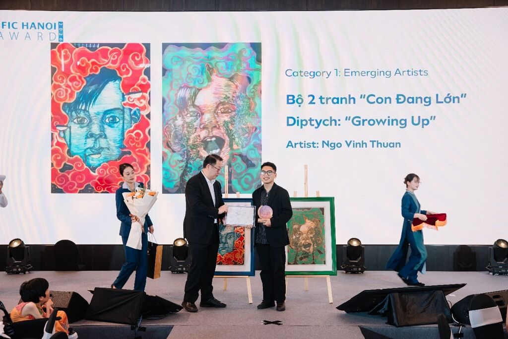 Dans la catégorie des jeunes artistes âgés de 18 à 30 ans, le premier prix a été attribué à Trinh Phan Anh pour son œuvre “Kết nối” (Connection - Connexion). Ngô Vinh Thuân a remporté le deuxième prix avec “Con Đang Lớn” (Growing Up - Grandir), tandis que Phan Sy Thang s’est distingué avec son diptyque “Giấc mơ tương lai” (Dreams of the Future - Rêves d’avenir). Le jury a également salué le talent prometteur de Nguyên Thuy Tiên pour “Hòa sinh” (Rebirth - Renaissance).