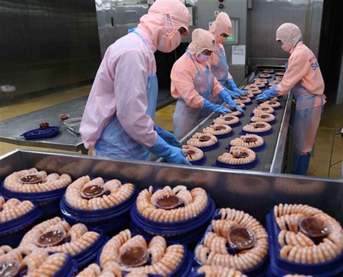 | Transformation de crevettes pour l'exportation. |