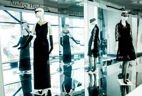 Un important espace est dédié à sa muse, l'actrice Audrey Hepburn, habillée au cinéma comme dans la vie par le couturier, devenu un ami. Un must : la célèbre robe longue noire qu'elle porte dans Breakfast at Tiffany's, avec des lunettes de soleil rondes et un collier à multiple rangs de perles.