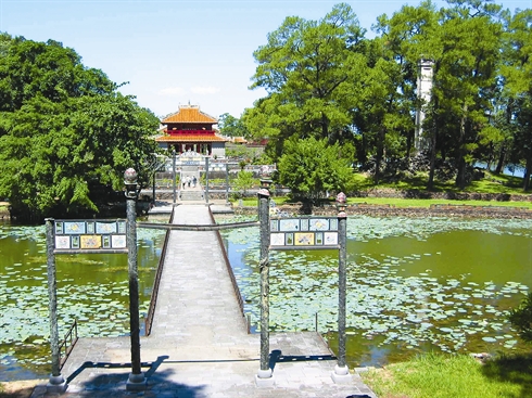 Si le palais-jardin est le lieu où le roi et ses proches jouissaient des bonheurs de ce bas-monde, le mausolée-jardin est celui où ils se retrouvaient à leur mort. À Huê, cette architecture est préservée en partie dans les mausolées des rois Minh Mang (1791-1841), Thiêu Tri (1807-1847), Tu Duc (1829-1883), Dông Khanh (1864-1889), Khai Dinh (1885-1925). Les mausolées étaient construits longtemps avant la mort des souverains, c’est pourquoi les détails sont minutieux.