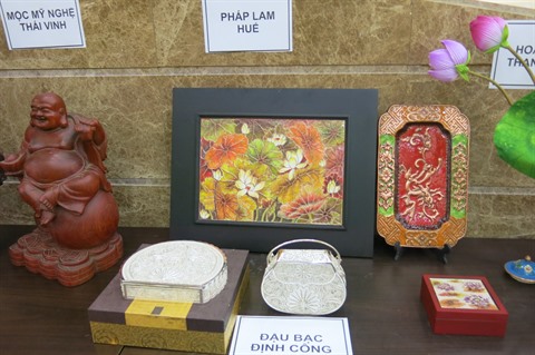 | Certains articles de villages de métiers de Huê (Centre) exposés à Hanoï. |