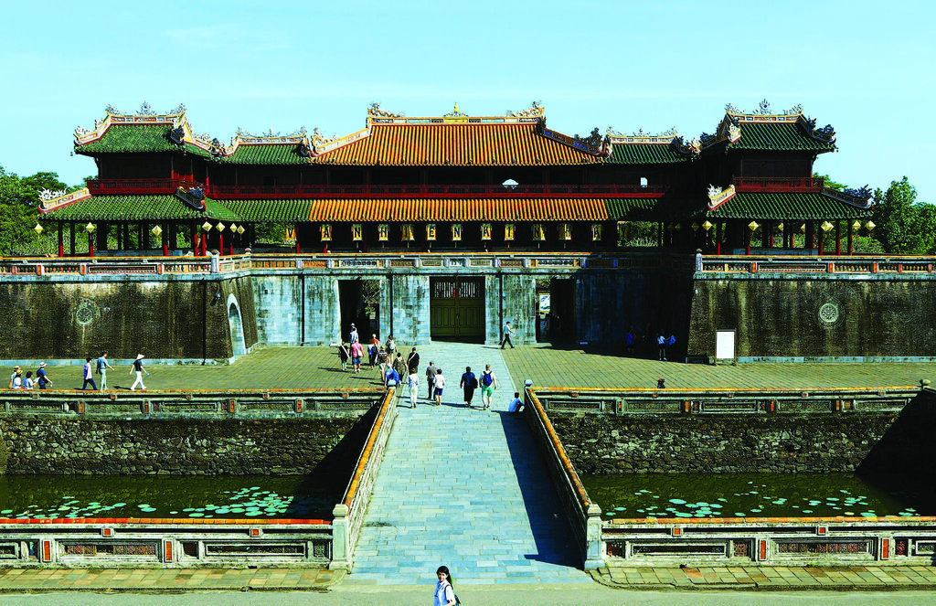 | Touristes visitant la Cité impériale de Huê (Centre). |