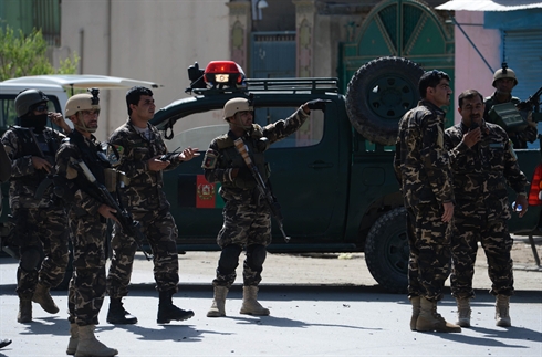 | Des policiers sur les lieux d'un attentat ayant visé deux véhicules militaires étrangers à Kaboul, le 16 mai. Photo : AFP/VNA/CVN |
