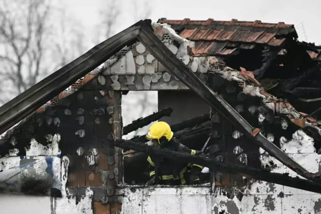 | Un pompier inspecte les dégâts causés par un incendie dans une maison de retraite à la périphérie de Belgrade, le 20 janvier en Serbie. |
