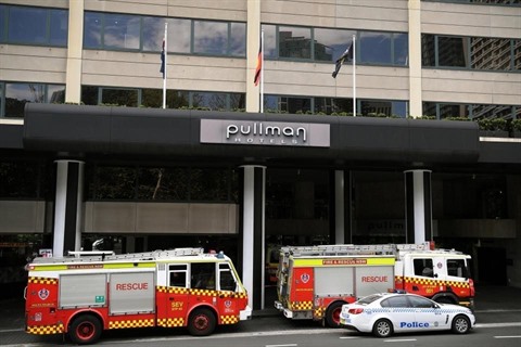 | Les secouristes devant Pullman Sydney Hyde Park Hotel le 19 septembre. |