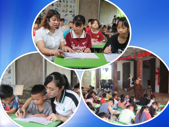 Depuis deux ans, la courde la pagode Tam Thanh (village d’An Cảnh, commune de Triệu Việt Vương, provincede Hưng Yên) est devenue un lieu éducatif spécial. Ici, pas d’estrade ni de tables de standard, mais uneclasse toujours animée par les rires et l’esprit d’apprentissage. Les enfants y apprennent à lire et àécrire gratuitement dans un espace pédagogique chaleureux et convivial.