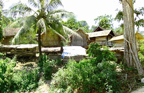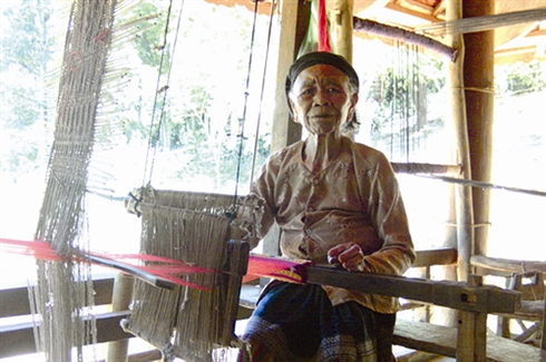 Pour justifier ce qu’il vient de dire, M. Minh nous a conduit au village Na. Nous avons alors suivi des sentiers sinueux pour enfin arriver tout d’abord chez Mme Lo Thi Quang. Malgré sa peau ridée, ses yeux étaient encore bons car elle tissait devant nous, des brocatelles. Lorsqu’elle nous a vus au pas de sa porte, elle s’est arrêtée pour nous inviter dans sa demeure, toute enthousiaste avec un sourire aux dents aussi noires que les graines des pommes-cannelles. Reconnaissant la chemise détériorée de M. Minh qu’elle avait auparavant cousue, Mme Lo Thi Quang l’a, en quelques minutes, remise en état.