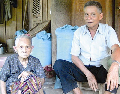 | Le couple Lương Khăm Phăn (113 ans) et Lương Thị Thăm (104 ans) vit dans le village de Xốp Thặp. |