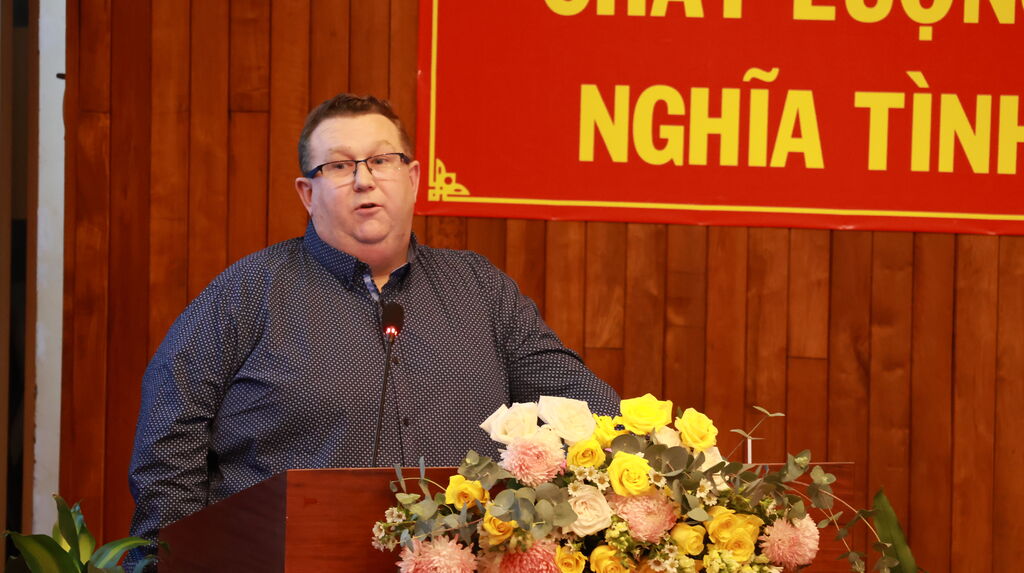 | David Bellamy, vice-président de la Fédération mondiale de la science de la stérilisation, s'exprime lors de la conférence. |