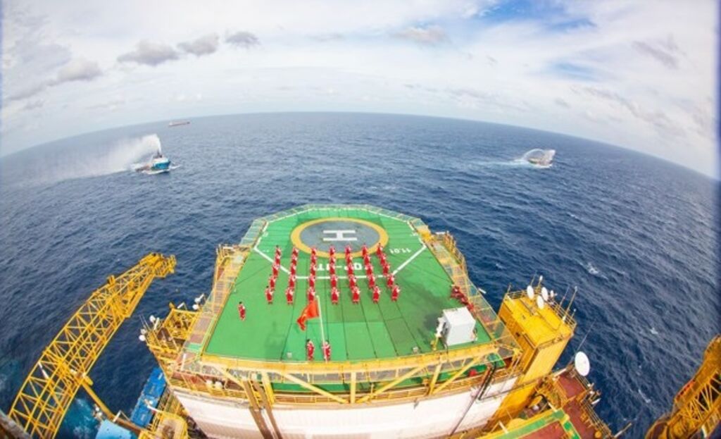 | Cérémonie de salut au drapeau national sur la plate-forme pétrolière Hai Thach - Môc Tinh. |