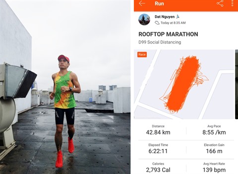 "J’ai déjà participé à des ultras marathons de 100 km. C’est pourquoi courir un marathon sur cette terrasse n’a pas été si difficile. Le défi, c’était le fait de courir dans un espace limité, qui engendre fatigue et surtout ennui. De plus, comme peu de gens viennent sur le toit de l’immeuble, il y a beaucoup de mousses. C’était d’autant plus glissant que la pluie s’en est mêlée. Je ne pouvais donc pas courir vite", explique Tiên Dat.
