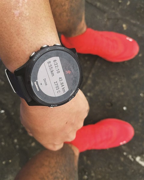 | La montre de Tiên Dat indique la distance parcourue, le temps nécessaire et la moyenne horaire. |