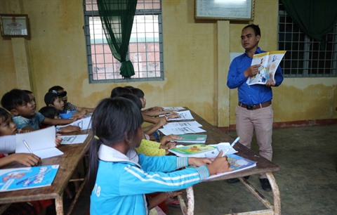 | K'Xiam Lo Minh donne un cours de samedi à des élèves de son village. |
