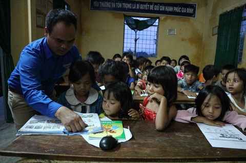 Comme d’habitude, chaque samedi après-midi, une fois son dernier cours donné au Centre d’anglais basé dans la ville de Bao Lôc (province de Lâm Dông, sur les hauts plateaux du Centre), K'Xiam Lo Minh parcourt plus de 10 km pour retrouver ses élèves de l’ethnie K’Ho dans son village natal dans la commune de Lôc Thành. Ici, tous les samedis et dimanches à partir de 17h00, il donne des cours d’anglais aux élèves entre 6 et 15 ans, et ce de manière complètement gratuite.