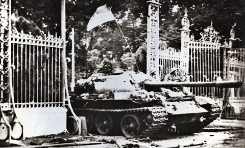 «Les soldats de l’armée de libération, moi y compris, étions très enthousiastes après le combat à la base militaire Nuoc Trong, détaille Hoà. Une fois le pont Saigon traversé, nous (trois autres soldats du tank N°846 et moi) étions très émus. Quand nous sommes entrés dans Saigon, j’ai demandé à mes hommes d’être tranquilles et attentifs pour pouvoir maîtriser la situation. Nous pensions que la guerre était finie et que le pays serait réuni». Le convoi blindé de l’armée de libération s’est alors orienté vers le Palais Dôc Lâp. À côté de la route, les Saigonais, fleurs dans les mains, ont salué l’armée de libération.