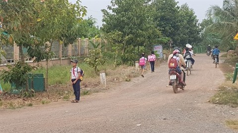 | Grâce à l'élargissement de la route Kênh Lô Ngang, les enfants de Long An (Sud) peuvent désormais aller à l’école à vélo. |