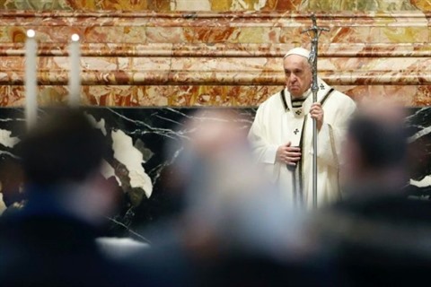 | Le pape François lors de la messe de l'Epiphanie, le 6 janvier 2021 en la basilique Saint-Pierre au Vatican. |