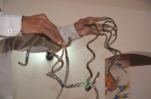 Malgré tout, Luu Công Huyên travaille et est indépendant financièrement. Il est le chef d’un groupe de maçons et de sculpteurs spécialisé dans la construction des pagodes et temples de la région et la décoration des reliefs de ces ouvrages. Un passionné jusqu’au bout des ongles.