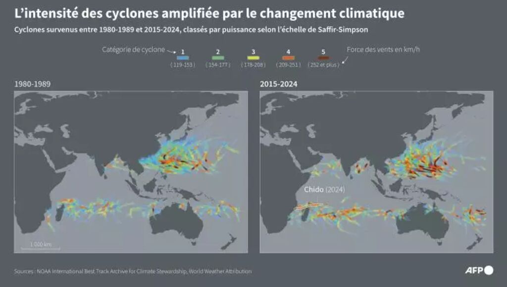 Le cyclone Chido, qui a ravagé Mayotte en décembre, a lui-même été rendu plus puissant par le changement climatique, selon une étude préliminaire britannique qui estime que le réchauffement climatique a rendu les vents plus forts d'environ 5%, le faisant passer de la catégorie 3 à la 4.
