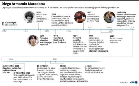 | Chronologie de la vie de Diego Maradona et de l'enquête de la justice sur la cause de sa mort. |