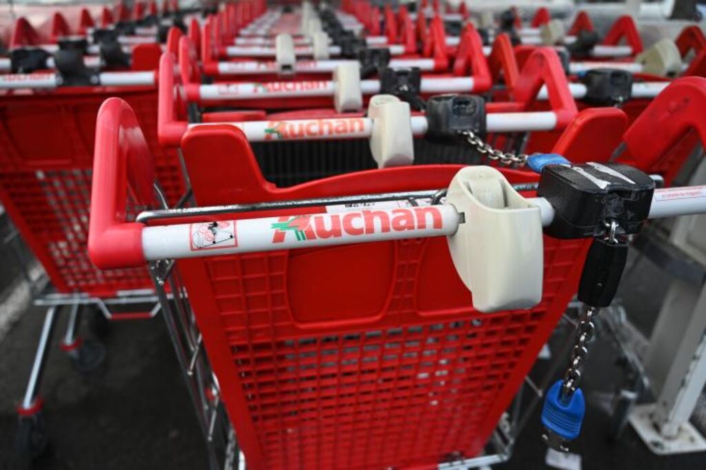 | Des caddies dans un hypermarché Auchan à Pérols (Hérault), en janvier 2020. |