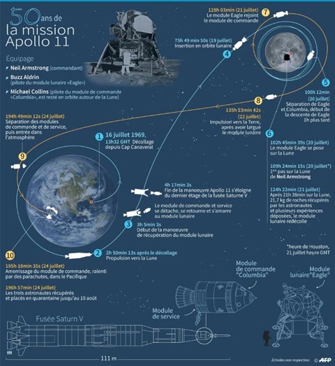 "J'y ai pensé après avoir atterri", a assuré Armstrong dans un long entretien en 2001. En fait, Armstrong a expliqué avoir voulu dire "pour un homme", mais a reconnu que ce n'était pas audible dans la transmission. À quoi ressemble la Lune, de près? La couleur varie selon l'angle du Soleil: de marron à gris à noir comme du charbon. La faible gravité requiert un temps d'adaptation. "J'ai commencé à courir doucement, j'avais l'impression de me déplacer au ralenti, dans de grandes foulées paresseuses", a écrit Aldrin dans un livre en 2009.