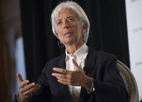La dirigeante du Fonds monétaire international a également pointé la "nette décélération" du commerce mondial et la "chute rapide" du cours des matières premières, qui plombent les finances des pays émergents qui les exportent.