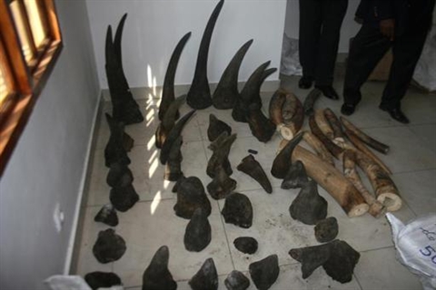 | Saisie de cornes de rhinocéros et d'ivoire de la police locale de Maputo, au Mozambique, le 13 mai. |