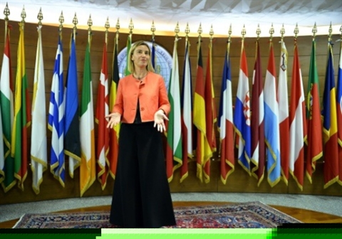 Les bâtiments de guerre européens pourront désormais opérer contre les passeurs mais à condition de rester dans les eaux internationales, a rappelé Mme Mogherini devant la presse.